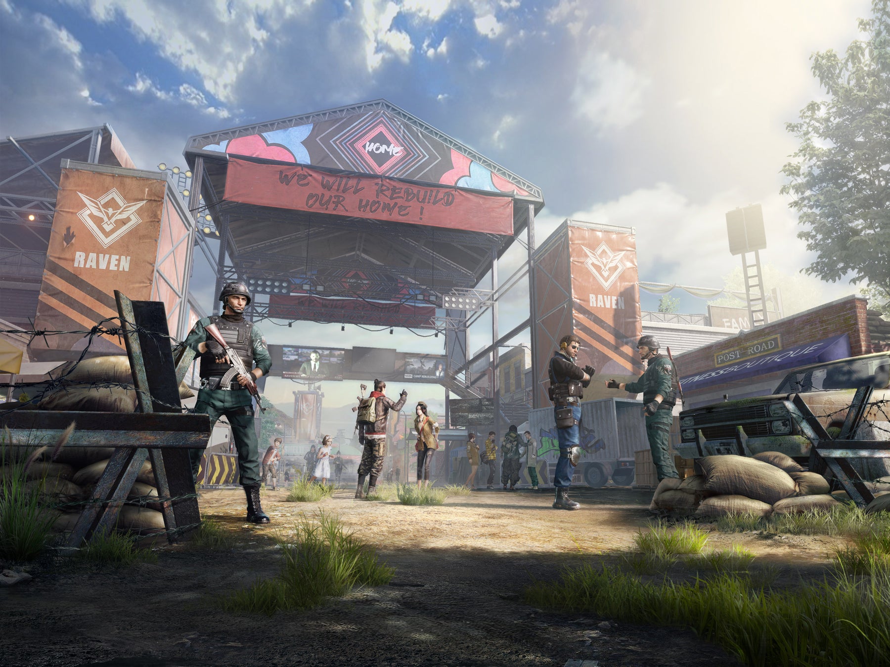 信頼できる仲間が集まって、生存者に食料や水、安全な居場所を提供し、秩序が崩壊したこの荒野に最後の希望をもたらした場所。より多くのサバイバーがシェルターを目指せるよう、常に無線で呼びかけ続けている。シェルターのサバイバーたちに安全を提供するため、レイヴン小隊は医薬品や武器、食料などの貴重品を探してシェルターの外に出向いていく。シェルターの外では、ゾンビだけではなく、時には物資を狙う敵勢力とも戦う必要があるのだ。